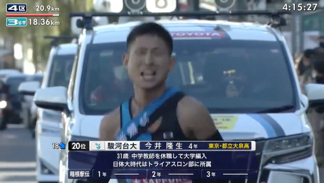 13.3 公里,金子伊吹超越殿地琢朗,将驹泽大学排名提升到第三位。