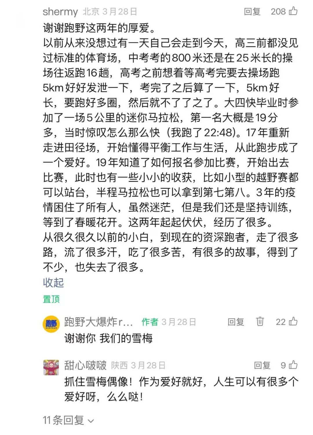 如她所言,这两年起起伏伏,经历了很多。自己也从很久之前的小白,到现在的资深跑者。走了很多路,流了很多汗,吃了很多苦,有了很多故事,得到了不少,也失去了很多。