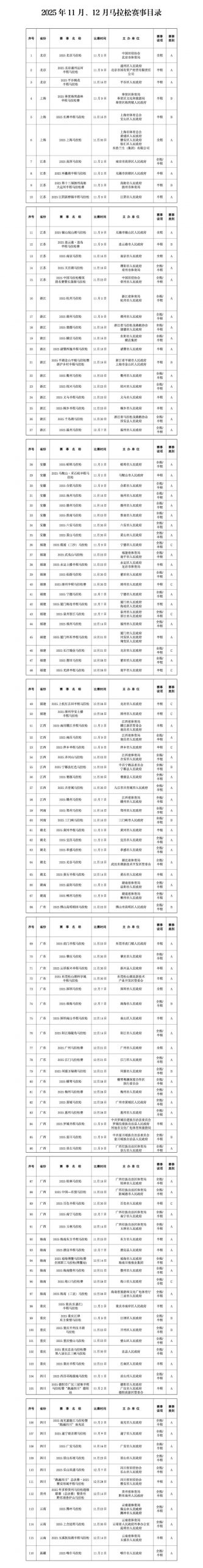2025年11月、12月马拉松赛事目录 跑野 • 2025年12月3日 pm1:58 • 新闻 • 阅读 63987 今日,中国田径协会在官方频道公布了 2025年11月、12月的马拉松赛事目录,来看看你报名的比赛吧。 你报名的比赛,依旧还在上面吗? 编辑:CC / 视觉:五年练习生 原创文章,作者:跑野,如若转载,请注明出处:https://runyeah.world/82047.html