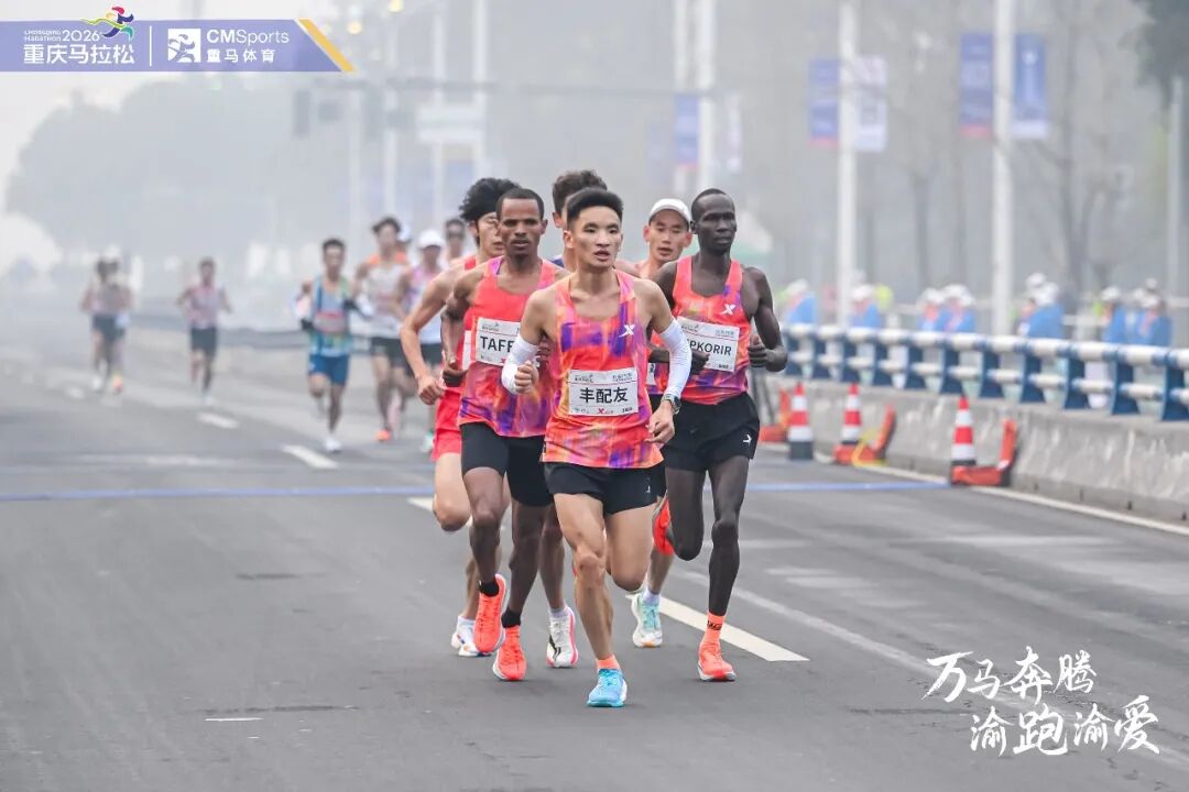 2026 重马:丰配友 2:10 破中国籍赛会纪录,朱卿 2:28 刷新 PB 成新大众一姐 跑野 • 4小时前 • 新闻 • 阅读 71400 2026 年重庆马拉松今日早上 8:30 鸣枪起跑,这是重庆马拉松首次在 1 月份举行。得益于良好的天气、赛道条件以及赛事组织,今年重庆马拉松精彩纷呈。 男子方面,在三位外籍特邀选手之外,我们更关注年轻小将丰配友以及中国马拉松常青树董国建的发挥。 丰配友 2:07:06 的 PB 成绩可以跑到全场第二,而且他状态很好,11 月底的上海马拉松,他刷新了中国籍赛道纪录。来到重庆,期待他打破董国建保持的赛道纪录,同时也有望获得全场冠军。 尽管董国建已经 38 岁,但依然保持着很好的竞技水平,选择跑重庆马拉松的他或许会带来惊喜。此外,岑万江、武明瑶、杨定宏等体制外选手之间的竞争也颇有看头。也别忘了跑野大爆炸的编辑李健 aka “铁蛋”,也具备不俗的竞争力。 女子方面,去年中国籍冠军丁常琴继续出战,她的主要竞争对手是来自北京的刘敏,她的全马 PB 是去年无锡跑的 2:28:16 ,年轻有冲劲。 去年在重庆刷新大众女子马拉松高度的朱卿、辞职后的张水华、以及湖南一姐黄菲,她们仨谁会率先突破 2:30 大关呢? 今年重庆马拉松大众精英选手水平非常高,能有多少人破三呢? 2026 重庆马拉松起跑温度 10°,当天最高温度为 19°,相对湿度在 60% 左右,相较往年,天气条件适合跑出好成绩。 首开跑后 2 公里,重庆籍选手许汝安处于领跑的位置,他身后是丰配友、赵长虹、董国建等热门选手。今年重马第一集团,外籍选手身边有一大堆中国跑者,这样的场景并不常见。 3 公里之后,丰配友冲到了最前面,董国建紧随其后,外籍特邀选手在身后不远处。 5 公里用时 15 分 13 秒,平均配配速 3 分 03 秒内。此时第一集团选手只剩下 7 人,张帮柳、丰配友、董国建和马瑞都在其中。 女子方面,第一个 5 公里用时 17 分 05 秒,刘敏排名第一。 5 公里过后没多久来到第一个折返点,丰配友采取了日式折返的方式。 第二个 5 公里,第一集团始终维持在 7 人左右。不过他们身后的追逐集团并没有落下太远,在直播镜头中就能看到他们,包括武明瑶、冒华杰和杨定宏等。 10 公里用时 30 分 32 秒,平均配速依然是 3 分 03 秒,丰配友领先。 女子方面,第一集团用时 34 分 06 秒,刘敏、朱卿和马秀针位列中国籍前三。 11 公里的时候,转播镜头给到了跑野大爆炸的编辑“铁蛋”。 沙正友在他身边,身后是前重庆一哥赵浩。13.5 公里的时候,武明瑶距离第一集团越来越近,半公里之后,他已经追上第一集团。 15 公里用时 46 分 06 秒,平均配速稍掉了一些。丰配友领跑,董国建、张帮柳、马瑞、武明瑶都在第一集团。 女子方面,第一集团用时 51 分 07 秒,马秀针和刘敏排名中国籍前二,用时 52 分 33 秒,预计完赛时间 2 小时 23 分左右。朱卿则稍为落后一点。 15-20 公里,男子第一集团并没有发生什么变化,大家都还处于留力的阶段。接近 20 公里的补给站,外籍特邀选手掉了一位。 20 公里用时 1 小时 01 分 40 秒,武明瑶领跑,董国建、马瑞、丰配友和张帮柳都在一起。比赛前半程即将进入尾声,后半程战况会如何变化呢? 女子方面,第一集团用时 1 小时 08 分 19 秒,中国籍前三分别是刘敏、朱卿、丁常琴,马秀针稍为落后了一些。 男子第一集团半程用时 1 小时 05 分 06 秒,预计完赛时间 2 小时 10 分 12 秒。 女子方面,镜头给到朱卿,22 公里的时候预计完赛时间 2 小时 28 分 51 秒,有望成为第二位跑进 2:30 大关的大众女子选手。24.6 公里的时候,丁常琴反超朱卿,升到中国籍第二。 25 公里用时 1 小时 17 分 10 秒,张帮柳、马瑞和丰配友领跑。女子 25 公里用时 1 小时 25 分 22 秒,两位外籍选手 Derarth Hailu Gerefa 和 Kebebush Yisma Zewoldemariam 领跑,刘敏、朱卿和丁常琴依然是中国籍前三。 25 公里刚过没多久,丰配友和张帮柳两位贵州选手提速,董国建和武明瑶配速跟不上了,没多久马瑞也被拉开了距离。两位外籍选手 Adisu Tesfahun Tafere 和 Benard Kipkorir 紧紧跟随。 28 公里的时候,直播镜头显示,丰配友和张帮柳领跑,董国建和武明瑶在身后不远处。 男子第一集团 30 公里用时 1 小 32 分 30 秒。 今天整体比赛节奏较为平稳,30 公里的时候出现第一个变化,Tafere 提速,向着冠军发起冲击。 Kipkorir 排名第二,丰配友第三。张帮柳和武明瑶分列第四和第五。最后 10 公里,丰配友能追上第一吗? 31 公里的时候,刘敏领先朱卿和丁常琴的距离为 100 米,优势并不算多。中国籍女子冠军还有悬念。 Tafere 35 公里用时 1 小时 47 分 17 秒,要破赛会纪录很难了。 35 公里的时候,董国建反超武明瑶,尽显老将风范。接近 36 公里的时候,丰配友拉开了与 Kipkorir 之间的距离,但没过多久又被追上了。 Tafere 依然领跑,领先距离 200 多米。最后 5 公里,丰配友还有机会吗? 朱卿反超了刘敏,有望刷新个人最好成绩,并首次跑进 2:30 大关,成为新的大众一姐。 最终,埃塞俄比亚选手 Tafere 夺得冠军,成绩为 2 小时 08 分 28 秒,职业生涯首次获得金标赛事冠军。 丰配友最后时刻反超 Kipkorir ,以 2 小时 10 分 22 秒的成绩获得亚军,并打破了了董国建保持的中国籍赛会纪录。 武明瑶 2 小时 12 分 19 秒夺得全场第四,中国籍亚军。董国建 2 小时 13 分 02 秒全场第五,中国籍第三,为老将致敬。马瑞全场第六,中国籍第四,张帮柳全场第七,中国籍第五。 赵浩 2 小时 15 分 09 秒刷新个人 PB 。李健