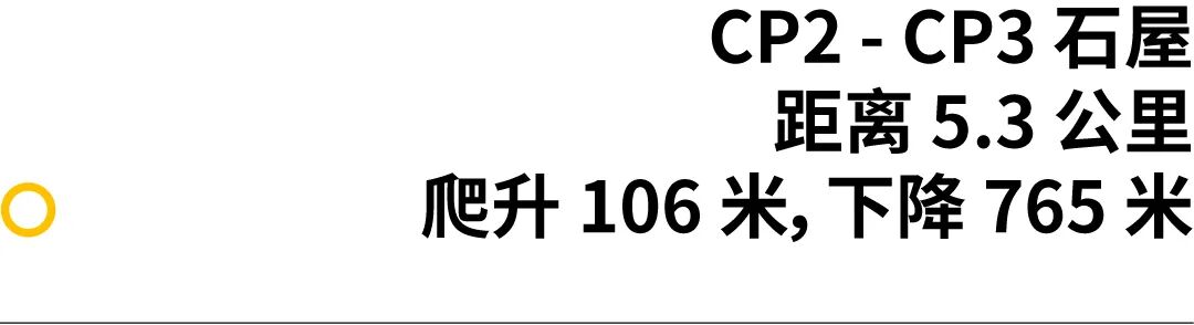 范邦林继续保持领先优势,用时 1 小时 50 分 59 秒,抵达 CP3 石屋,卫冕的希望越来越大。管油胜排名第二,落后 1 分多钟,杨春龙排名第三。